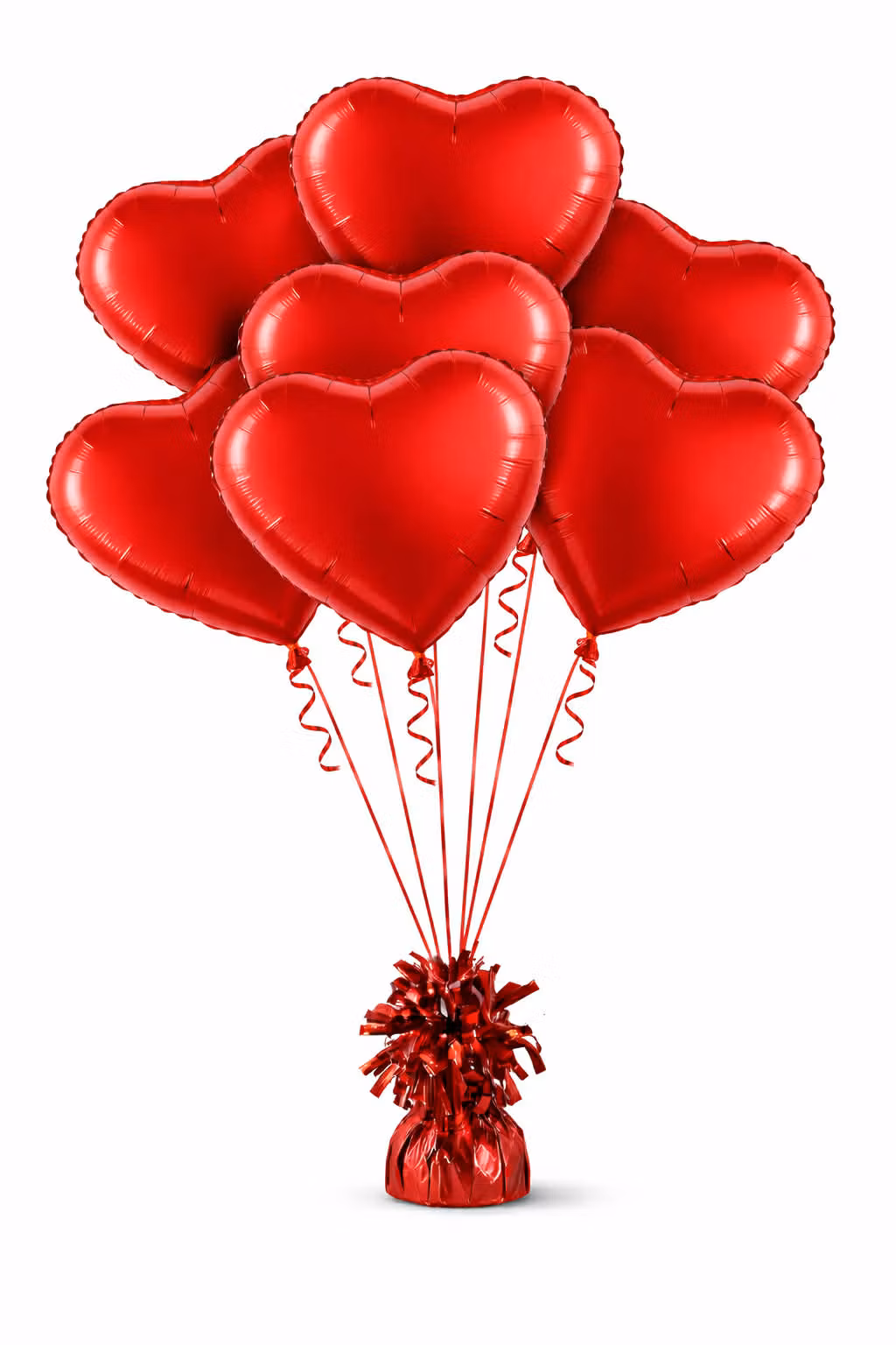 Folieballongsbuketten delux! Massor med röda hjärtan på en tyngd ger det lilla extra hemma eller på företaget.