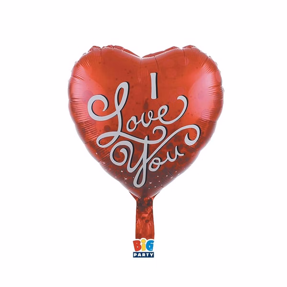 Klassisk röd hjärtballong med fin skrivstils text på med texten i love you.