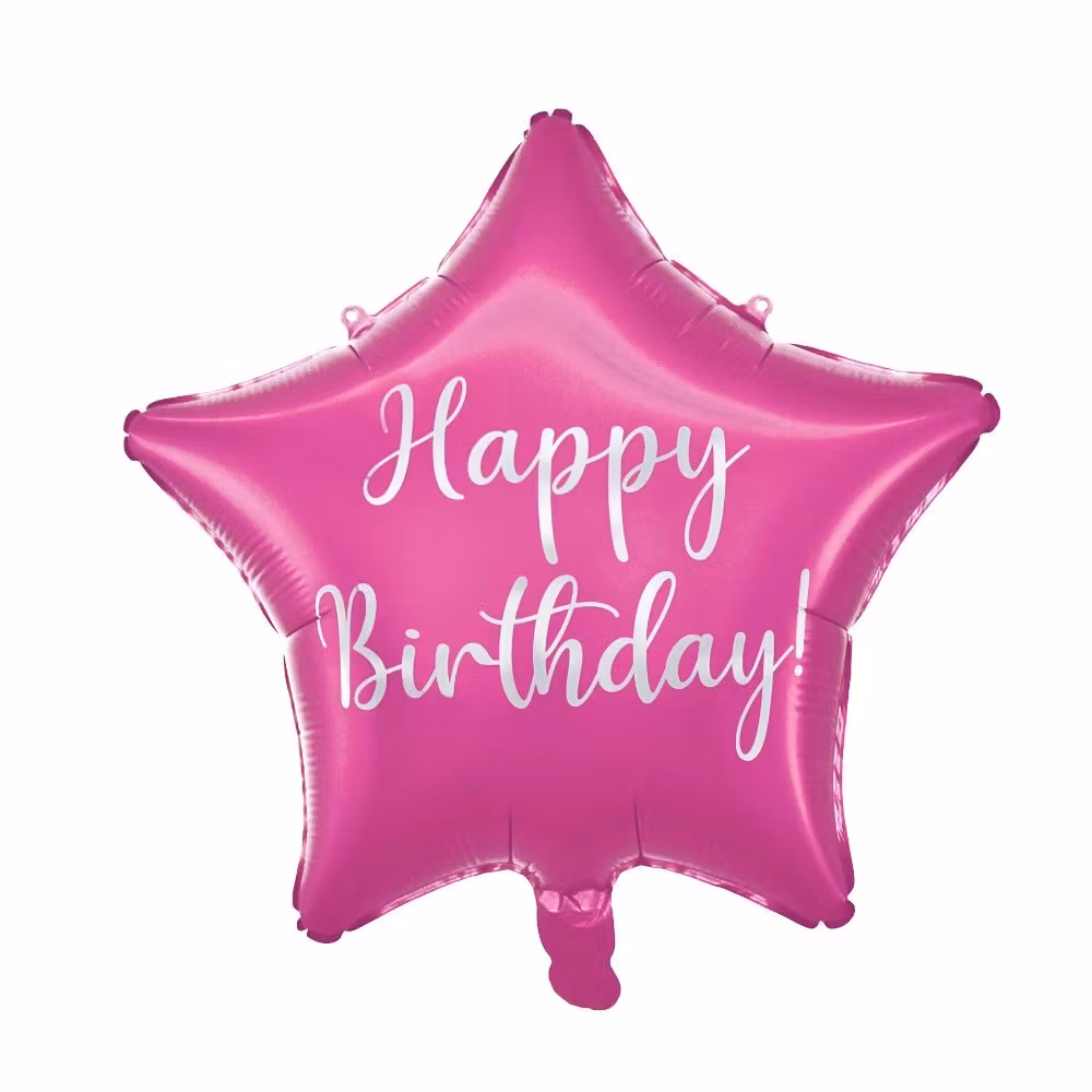 Den rosa stjärnballongen med texten “Happy Birthday” är en stilren och iögonfallande dekoration som gör födelsedagen extra speciell.
