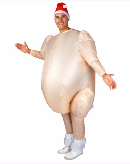 Innehåller: En uppblåsbar dräkt som liknar en kalkon